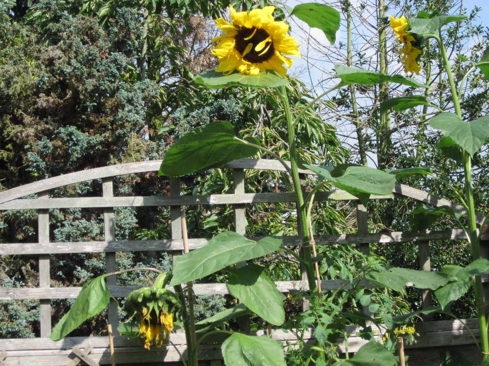 Now I have just 3 sunflowers in my garden, all planted at the same time. One decided to flower whilst we were away whereas the others are only now flowering, mind you they did grow a lot taller.